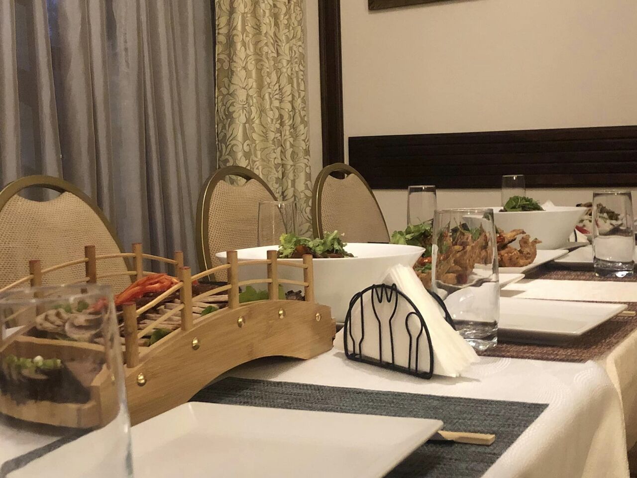 Cu un decor modern și atent aranjat, noi vă invită să vă bucurați de o experiență culinară unică, care îmbină elemente tradiționale cu note contemporane. Luminile calde, mobilierul elegant și accentele subtile de artă chineză creează un cadru intim, perfect pentru a vă relaxa și a vă delecta cu cele mai fine arome din Orient.